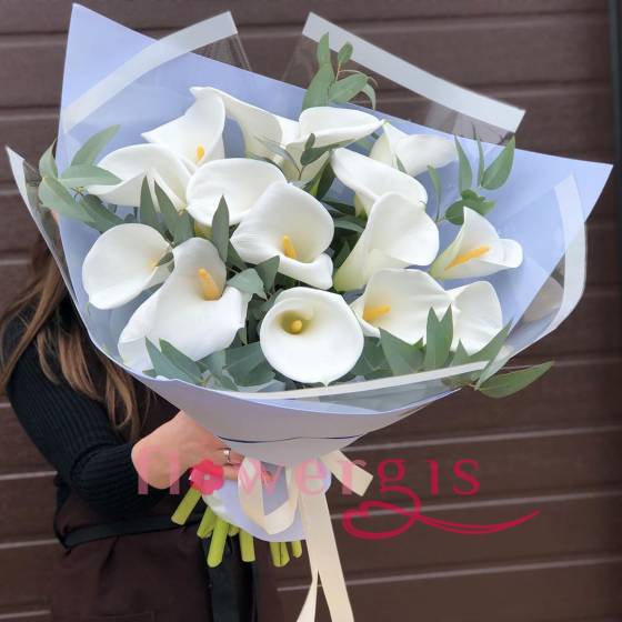Каллы на языке цветов - Радость, Восхищение, Любовь и тепло. Это богаты на вид цветок, очень красиво смотрится в руках, его приятный аромат не раздражает в замкнутом помещение. Это поистине удивительный цветок, который принесет вам море впечатлений.